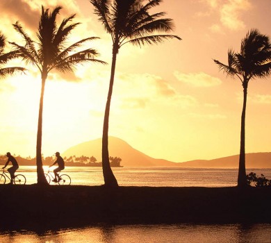 • In the afternoon, rent a pair of our cruiser bikes to explore the beautiful neighborhood of Kahala and soak in the gorgeous views. Stop by Kahala Mall to browse the stores and recharge with a light meal or beverage, or see a movie.