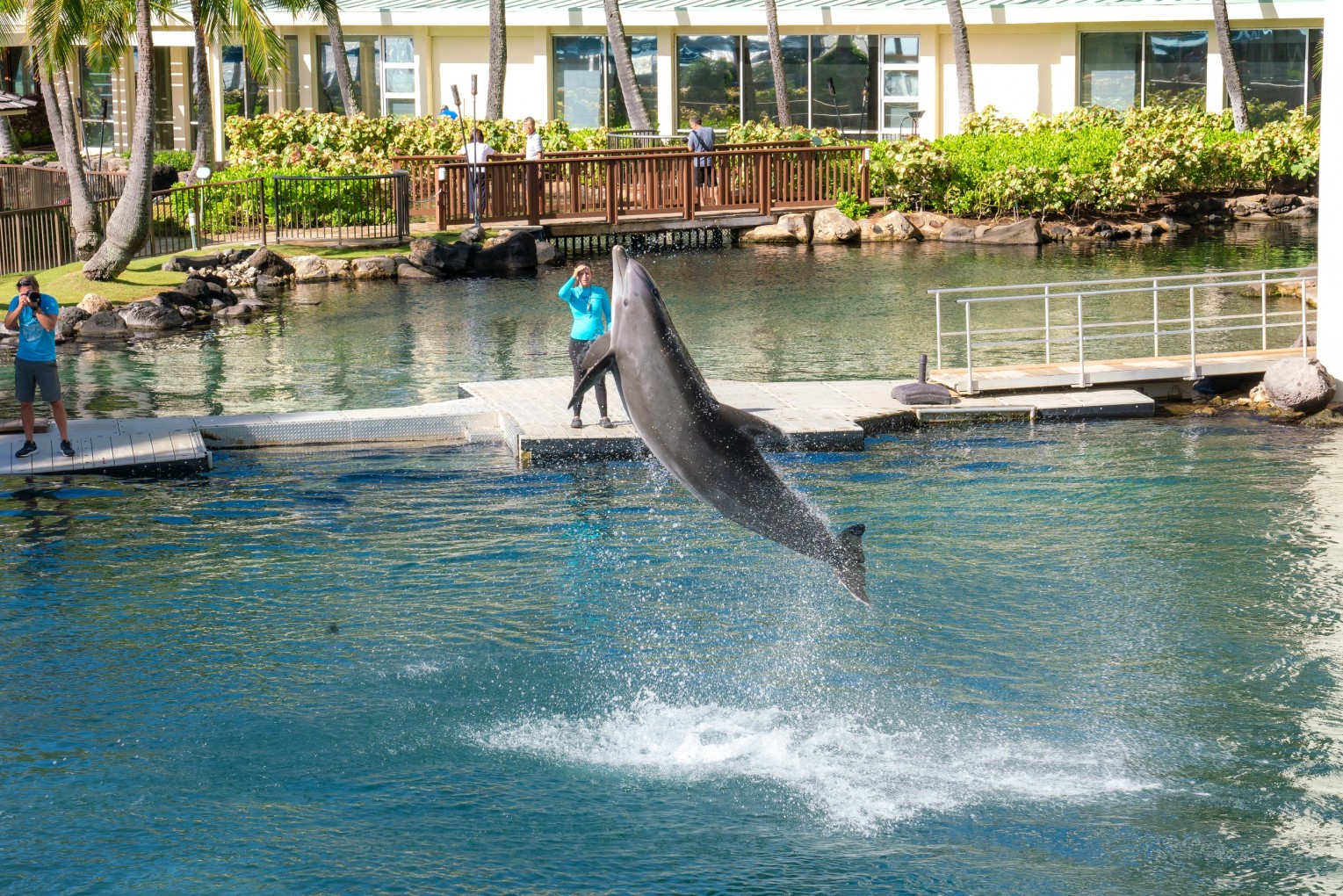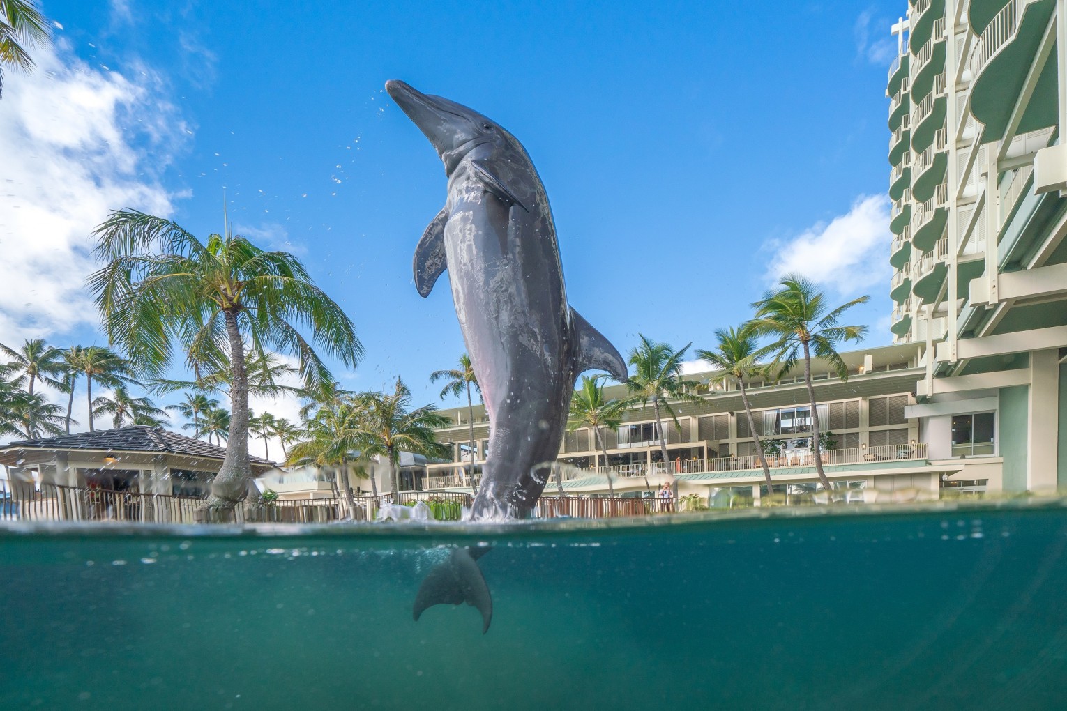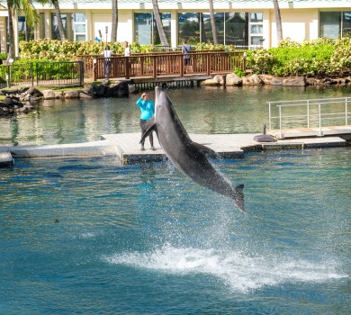 • In the afternoon, get to know the playful Bottlenose Dolphins who live in our natural water lagoon. This experience is fun for the whole family, and you’ll get to feed, play and swim with these amazing creatures. Learn more about our partner, Dolphin Quest.